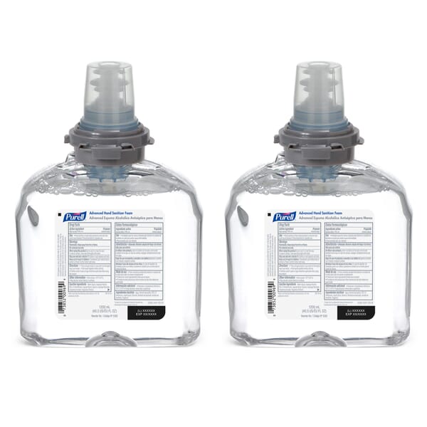 PURELL 5392-02 TFX Hand Sanitizer, 1200 mL Nominal, Dispenser Refill Package, Foam Form, Fruity/Odorless Odor/Scent, Clear/Colorless/Yellow