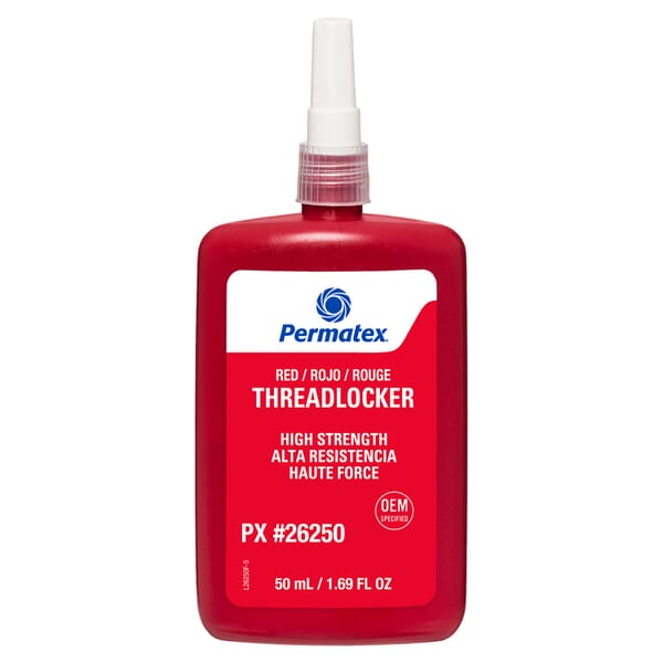 Permatex 26250 Permanent Strength Threadlocker, 50 mL Bottle, Liquid Form, Red