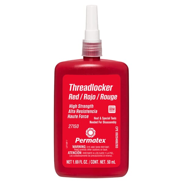 Permatex 27150 High Strength Threadlocker, 50 mL Bottle, Liquid Form, Red