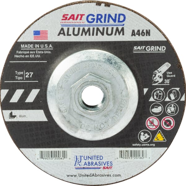 United Abrasives-SAIT 20063 General Purpose Depressed Center Wheel, 4-1/2 in Dia x 1/4 in THK, 7/8 in Center Hole, 24 Grit, Aluminum Oxide Abrasive