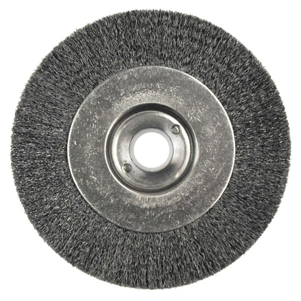 Weiler 00114 TLN-4 Narrow Face Wheel Brush, 4 in Dia Brush, 1/2 in W Face, 0.008 in Dia Filament/Wire Crimped Filament/Wire, 3/8 to 1/2 in Arbor Hole