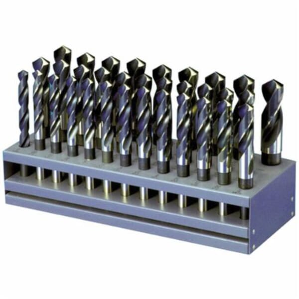 MORSE Silver and Deming Drill Set, Series: 8040R, Imperial System of Measurement, 1/2 in Minimum Drill Bit Size, 1 in Maximum Drill Bit Size, 118 deg Drill Point Angle, 33 Piece, Specifications: 1/2 in Reduced Shank, Standard Point, Standard Flute, HSS, Oxide Treated