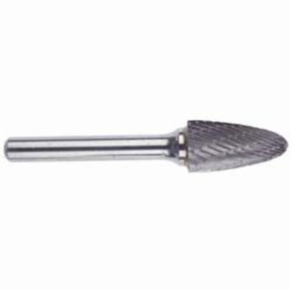 MORSE Carbide Burr, Premium, Series: 5970, Radius, 1/4 in Head Dia, 5/8 in Length of Cut, 2-3/8 in Overall Length, Tree Head Shape, Double Cut Type, 1/4 in Shank Dia, Solid Carbide Head, Bright Head Coating, 45 deg Included Angle, 50000 rpm Maximum, Applicable Materials: Brass, Cast Iron and Copper, SF-1 Industry Specification
