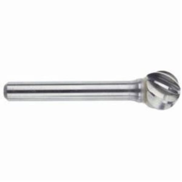 MORSE Carbide Burr, Series: 5970, 3/4 in Head Dia, 11/16 in Length of Cut, 2-7/16 in Overall Length, Ball Head Shape, Aluminum Cut Type, 1/4 in Shank Dia, Solid Carbide Head, Bright Head Coating, 45 deg Included Angle, 19000 rpm Maximum, Applicable Materials: Aluminum, Non-Ferrous Metals, Soft Steel, Reinforced Plastics and other Soft Materials, SD-7NF Industry Specification