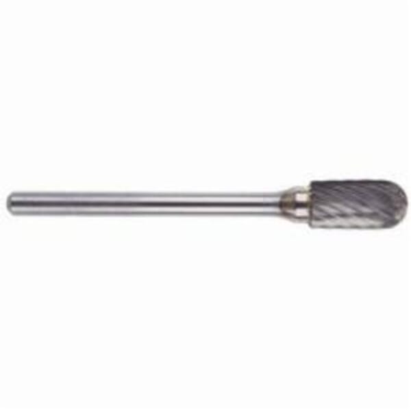 MORSE Carbide Burr, General Purpose Long Shank Premium, Series: 5970, Radius End, 1/4 in Diameter Head, 1/2 in Length of Cut, 6-1/2 in Overall Length, Cylindrical Head Shape, Single Cut, 1/4 in Shank Diameter, 6 in Shank Length, Solid Carbide Head, Bright Head Coating, 50000 rpm Maximum, Applicable Materials: Cast Iron, Ferrous Metals and Steel, Industry Specification: SC-1L6