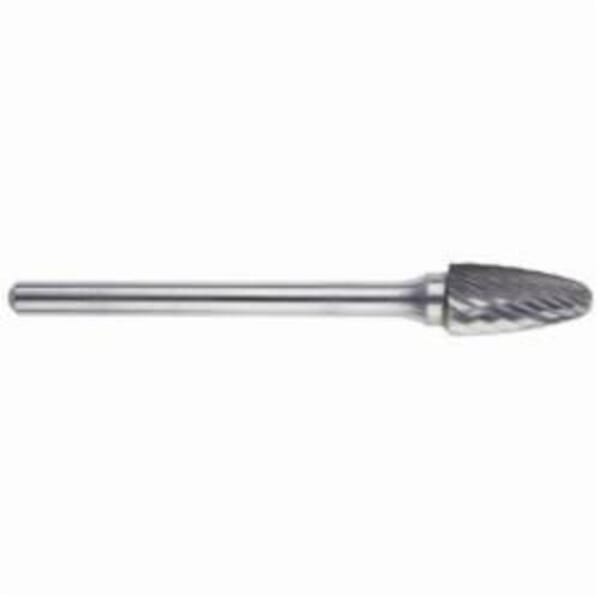 MORSE Carbide Burr, General Purpose Long Shank Premium, Series: 5970, Radius, 3/8 in Head Dia, 3/4 in Length of Cut, 6-3/4 in Overall Length, Tree Head Shape, Single Cut Type, 1/4 in Shank Dia, 6 in Shank Length, Solid Carbide Head, Bright Head Coating, 45 deg Included Angle, 38000 rpm Maximum, Applicable Materials: Cast Iron, Ferrous Metals and Steel, SF-3L6 Industry Specification