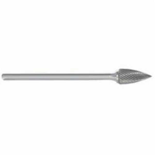 MORSE Carbide Burr, General Purpose Long Shank Premium, Series: 5970, 1/2 in Head Dia, 1-1/4 in Length of Cut, 6-7/8 in Overall Length, Flame Head Shape, Single Cut Type, 1/4 in Shank Dia, 6 in Shank Length, Solid Carbide Head, Bright Head Coating, 45 deg Included Angle, 36000 rpm Maximum, Applicable Materials: Cast Iron, Ferrous Metals and Steel, SH-5L6 Industry Specification