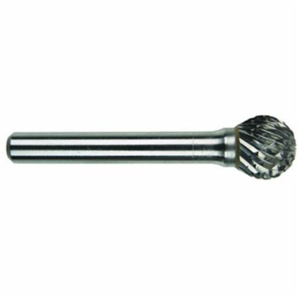MORSE Carbide Burr, General Purpose Premium, Series: 5970, 3/16 in Head Dia, 1/8 in Length of Cut, Ball Head Shape, Single Cut Type, 1/4 in Shank Dia, Solid Carbide Head, Bright Head Coating, 45 deg Included Angle, 55000 rpm Maximum, Applicable Materials: Cast Iron, Ferrous Metals and Steel, SD-14 Industry Specification