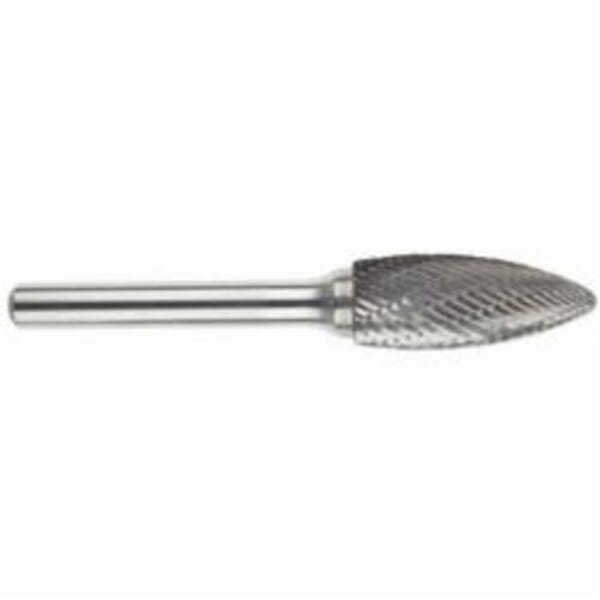 MORSE Carbide Burr, Premium, Series: 5970, 5/8 in Head Dia, 1-7/16 in Length of Cut, 3-3/16 in Overall Length, Flame Head Shape, Double Cut Type, 1/4 in Shank Dia, Solid Carbide Head, Bright Head Coating, 45 deg Included Angle, 23000 rpm Maximum, Applicable Materials: Brass, Cast Iron and Copper, SH-6 Industry Specification