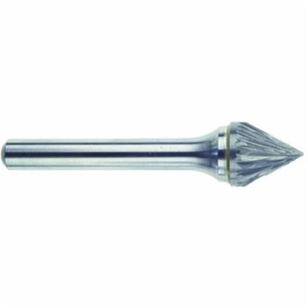 MORSE Wheel Brush, Premium, Series: 5970, 1/4 in Diameter Head, 3/16 in Length of Cut, Cone Head Shape, Double Cut, 1/4 in Shank Diameter, Solid Carbide Head, Bright Head Coating, 60 deg Included Angle, 50000 rpm Maximum, Applicable Materials: Brass, Cast Iron and Copper, Industry Specification: SJ-1