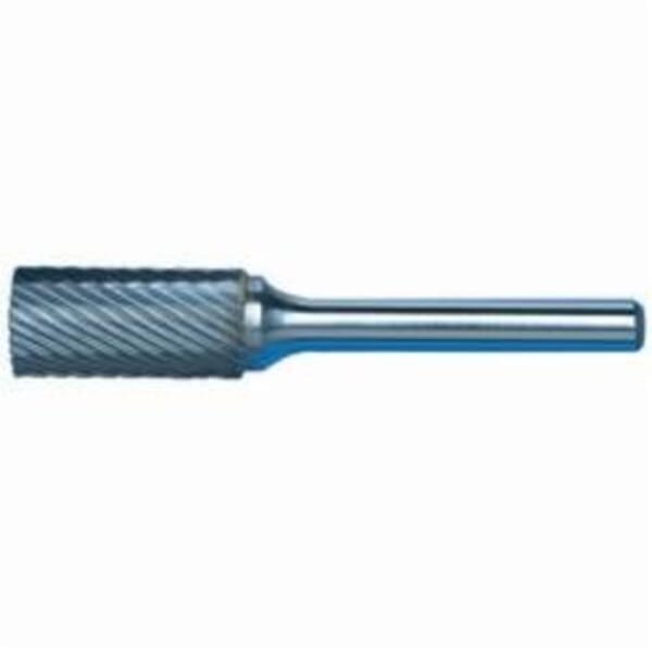 MORSE Carbide Burr, General Purpose Premium, Series: 5970, Flat End, 7/16 in Diameter Head, 1 in Length of Cut, 2-3/16 in Overall Length, Cylindrical Head Shape, Single Cut, 1/4 in Shank Diameter, Solid Carbide Head, Bright Head Coating, 37000 rpm Maximum, Applicable Materials: Cast Iron, Ferrous Metals and Steel, Industry Specification: SA-4