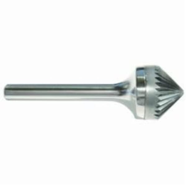 MORSE Wheel Brush, General Purpose Premium, Series: 5970, 5/8 in Diameter Head, 5/16 in Length of Cut, 2-1/16 in Overall Length, Cone Head Shape, Single Cut, 1/4 in Shank Diameter, Solid Carbide Head, Bright Head Coating, 90 deg Included Angle, 23000 rpm Maximum, Applicable Materials: Cast Iron, Ferrous Metals and Steel, Industry Specification: SK-6