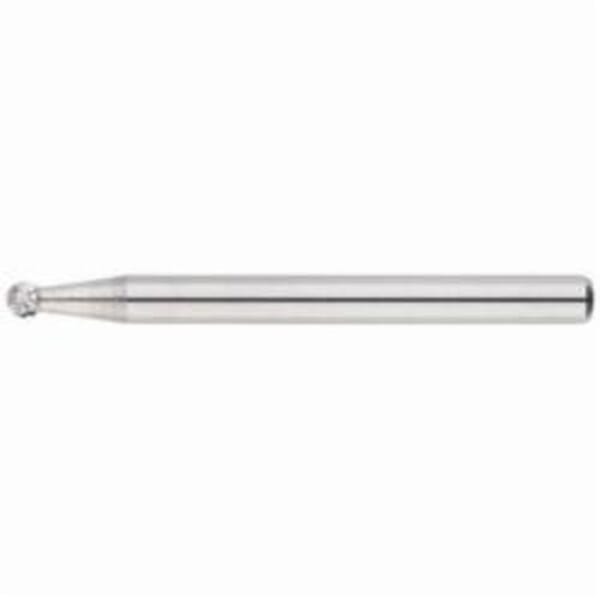 MORSE Carbide Burr, Premium, Series: 5970, 3/32 in Head Dia, 3/32 in Length of Cut, 1-1/2 in Overall Length, Ball Head Shape, Double Cut Type, 1/4 in Shank Dia, Solid Carbide Head, Bright Head Coating, 45 deg Included Angle, 60000 rpm Maximum, Applicable Materials: Brass, Cast Iron and Copper, SD-41 Industry Specification