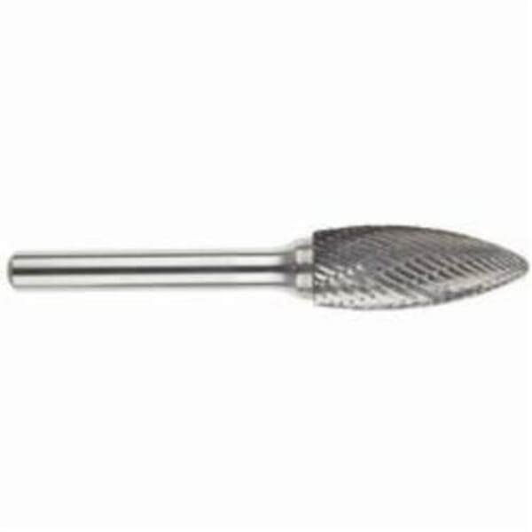 MORSE 59944 5970 Long Shank Carbide Burr, Flame Head, 1/2 in Dia Head, 1-1/4 in L of Cut, 6-7/8 in OAL, Double Cut