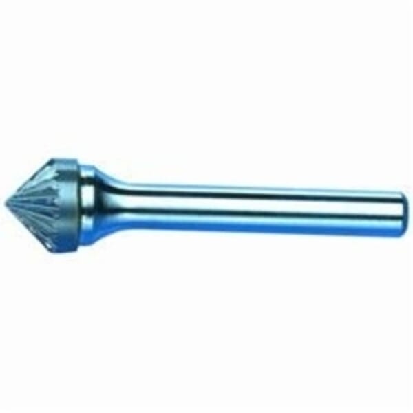 MARXMAN Wheel Brush, General Purpose, Series: 597, 3/4 in Diameter Head, 3/8 in Length of Cut, Cone Head Shape, Single Cut, 1/4 in Shank Diameter, Solid Carbide Head, Bright Head Coating, 90 deg Included Angle, 19000 rpm Maximum, Applicable Materials: Cast Iron, Ferrous Metals and Steel, Industry Specification: SK-7