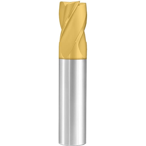 SGS End Mill, Fractional Stub Length Square End, Series: 16S, 3/4 in Diameter Cutter, 3 in Overall Length, 1 in Length of Cut, 4 Flutes, Spiral Flute, 3/4 in Shank Diameter, Right Hand Cutting Direction, 30 deg Helix Angle, Straight Shank, 2 in Shank Length, Micrograin Solid Carbide, TiN