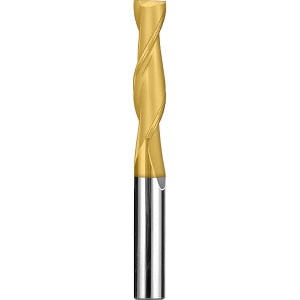 SGS End Mill, Fractional Long Length Square End, Series: L3S, 3/4 in Diameter Cutter, 5 in Overall Length, 2-1/4 in Length of Cut, 2 Flutes, Spiral Flute, 3/4 in Shank Diameter, Right Hand Cutting Direction, 30 deg Helix Angle, Straight Shank, 2 in Shank Length, Micrograin Solid Carbide, TiN
