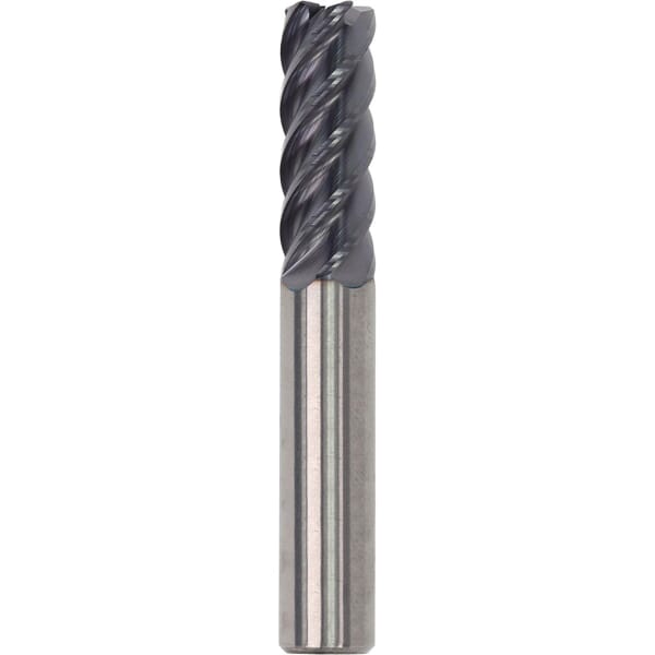 SGS End Mill, Center Cutting High Performance Positive Rake Single End, Series: V-Carb 55CR, 1/2 in Diameter Cutter, 0.06 in Corner Radius, 3 in Overall Length, 1-1/4 in Length of Cut, 5 Flutes, Right Spiral Flute, 1/2 in Shank Diameter, Right Hand Cutting Direction, 45 deg Helix Angle, Straight Shank, 1-3/4 in Shank Length, Solid Carbide, AlTiN