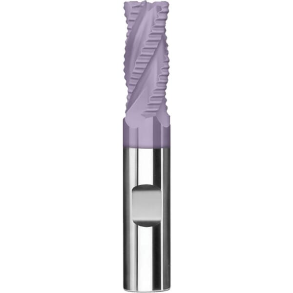 SGS End Mill, Medium Length Roughing End Single Chip Breaker, Series: 61 Series, 1/2 in Cutter Dia, 3 in Overall Length, 1 in Length of Cut, 4 Flutes, Spiral Flute, 1/2 in Shank Dia, Right Hand Cutting, 30 deg Helix Angle, Straight/Weldon Flat Shank, Micrograin Solid Carbide, TiCN Coated
