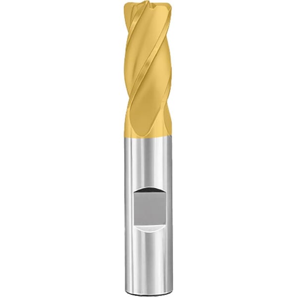 SGS 38012 1CR Center Cutting Positive Rake Regular Length Single End End Mill, 3/16 in Dia Cutter, 0.02 in Corner Radius, 5/8 in Length of Cut, 4 Flutes, 3/16 in Dia Shank, 2 in OAL, TiN Coated