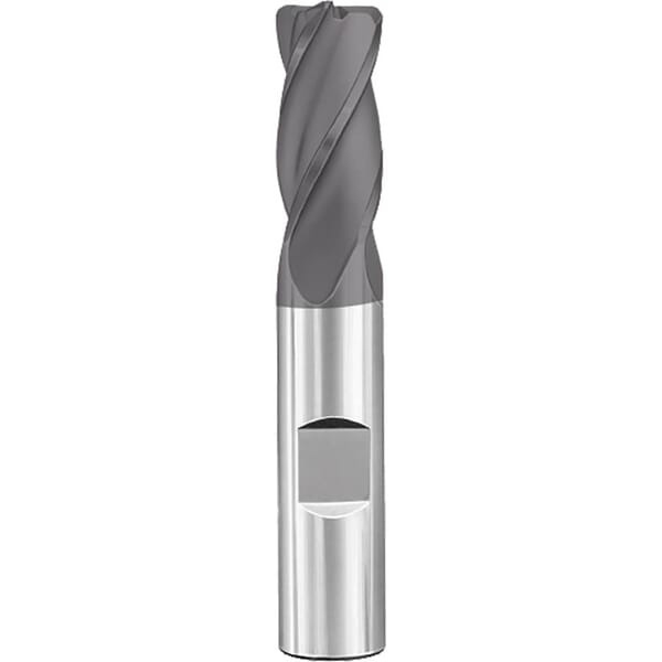 SGS End Mill, Center Cutting Positive Rake Regular Length Single, Series: 1CR, 3/4 in Cutter Dia, 1/8 in Corner Radius, 4 in Overall Length, 1-1/2 in Length of Cut, 4 Flutes, Right Spiral Flute, 3/4 in Shank Dia, Right Hand Cutting, 30 deg Helix Angle, Weldon Flat Shank, 2-1/2 in Shank Length, Solid Carbide, AlTiN Coated