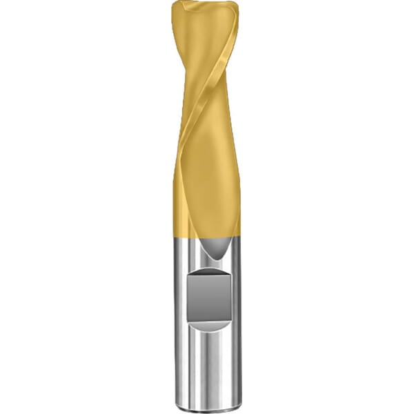 SGS 38310 3CR Center Cutting Positive Rake Regular Length Single End Mill, 1 in Dia Cutter, 0.06 in Corner Radius, 1-1/2 in Length of Cut, 2 Flutes, 1 in Dia Shank, 4 in OAL, TiN Coated