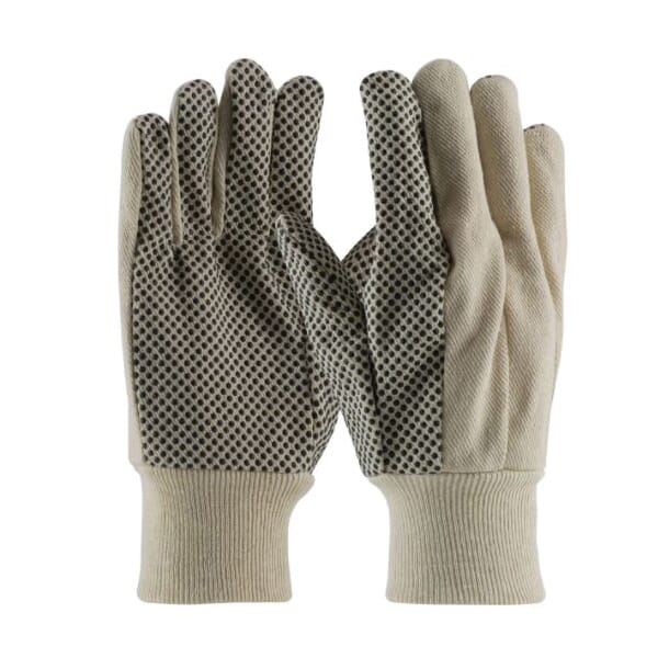PIP, 91-910PDI, General Purpose Gloves, Economy Grade, Work Glove, PVC Palm, 10 oz Cotton, Natural, Clute Cut/Straight Thumb Style, Canvas Lining, Knit Wrist Cuff, Dotted Palm and Fingers Coating Coverage
