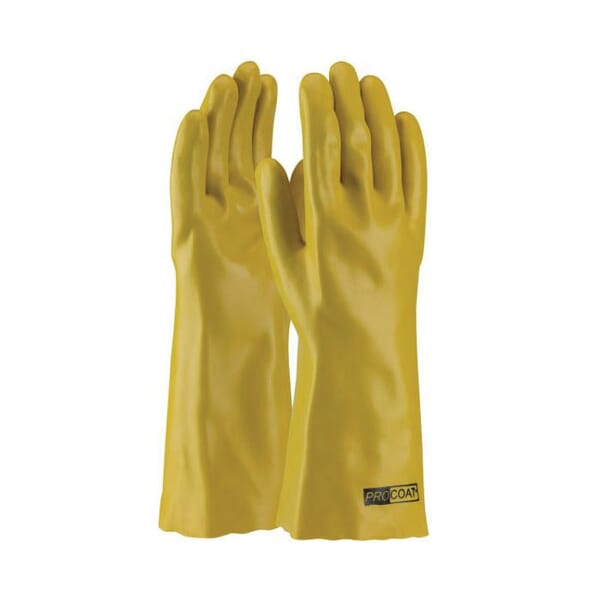 PIP ProCoat Chemical-Resistant Gloves, Mens Single Dipped, Universal Size, Cotton/PVC, Yellow, Smooth, Smooth Grip Style, Jersey Lining, Gauntlet Cuff, Supported Support, PVC Coating, 14 in Length, Resists: Abrasion, Cut, Puncture and Tear