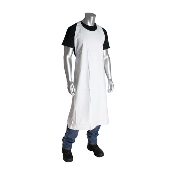 PIP Bib Apron, Vinyl Pot Sink, White, PVC/Vinyl, 45 in Length, 35 in Width, Resists: Abrasion, Puncture, Chemical, Fats, Oil and Grease