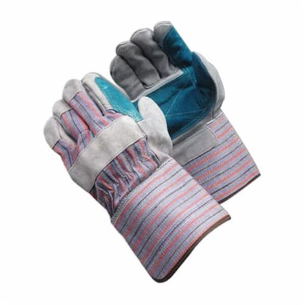 PIP, 84-7633, General Purpose Gloves, Double Palm, Series: Copper, Universal Size, Shoulder Split Cowhide Leather Palm, 75% Cowhide Leather/25% Cotton, Aqua/Black/Blue/Gray/Red, Gunn Cut/Wing Thumb Style, Cotton Lining, Gauntlet Cuff, Uncoated Coating, Elastic/Knuckle Strap Closure, 12-1/2 in Length, Resists: Water