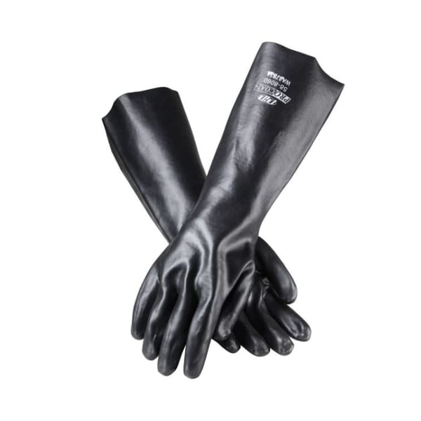 PIP ProCoat Fully Coated Gloves, Mens Single Dipped, Universal Size, Cotton, Black, Smooth, Smooth Grip Style, Cotton Interlock Lining, Gauntlet Cuff, Supported Support, PVC Coating, 18 in Length, Resists: Abrasion, Cut, Puncture and Tear