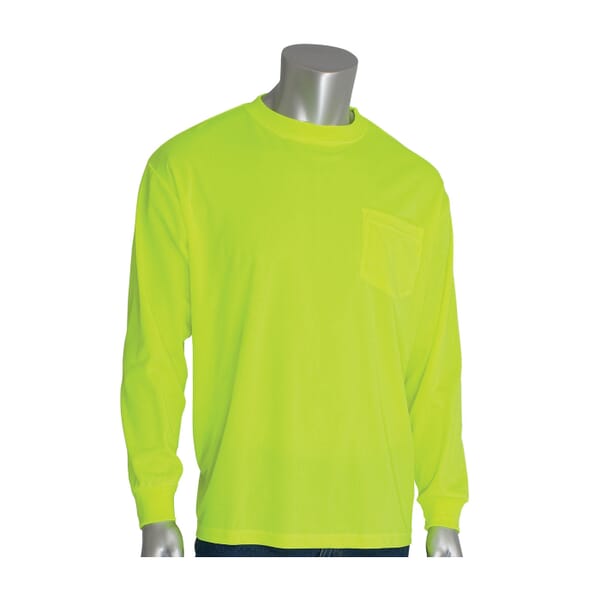 PIP Long Sleeve T-Shirt, Non-ANSI, XL, Hi-Viz Lime Yellow, Polyester, 29.9 in Length, 55.1 in Chest, 140 gsm Fabric Weight, 1 Pockets