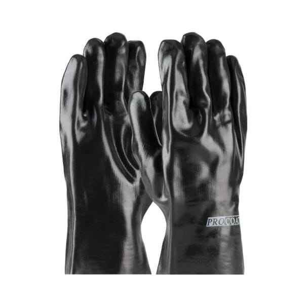 PIP ProCoat 58-8020 Dipped Chemical-Resistant Gloves, Universal, Cotton, Black, Cotton Interlock Lining, 10 in L, Resists: Abrasion, Cut, Puncture and Tear, Supported Support, Open Cuff