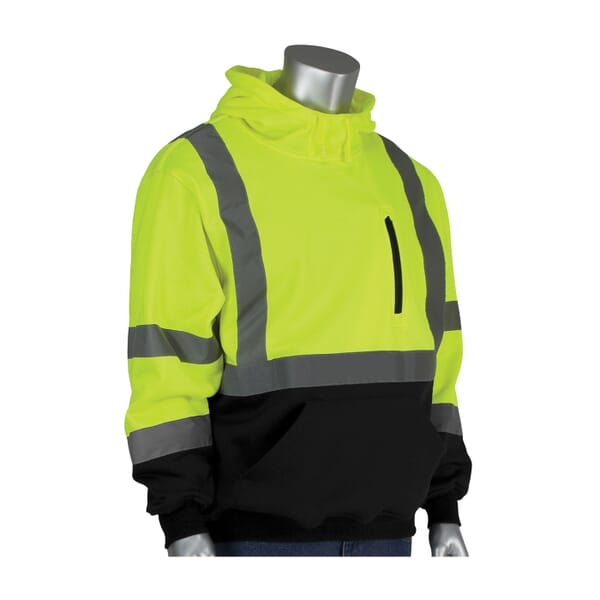 PIP Sweatshirt, 4XL, Hi-Viz Lime Yellow, Polyester Fleece, 33.1 in Length, 57-1/2 in Chest, Hooded Pullover Closure, 10 oz Fabric Weight, 2 Pockets