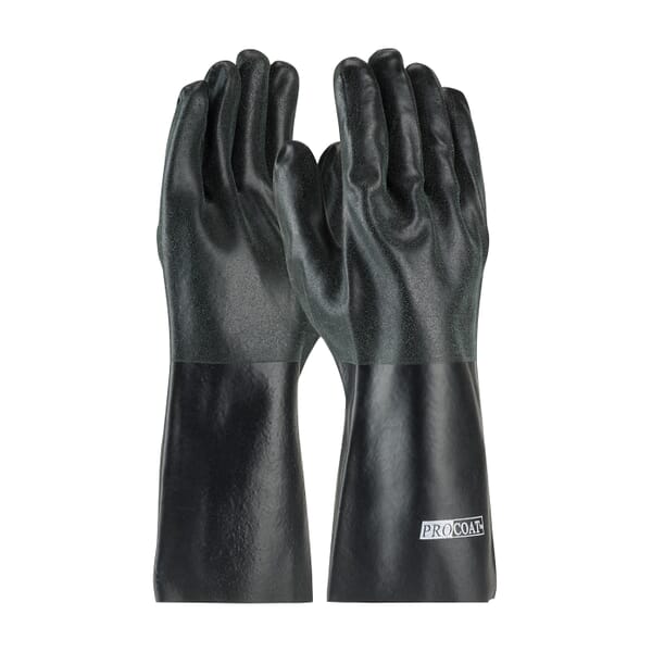 Protective Industrial ProductsPIP ProCoat 58-8140DD Dipped Coated Gloves, Universal, Cotton/PVC, Black, Cotton Interlock Lining, 14 in L, Resists: Abrasion, Cut, Liquid and Oil, Supported Support, Gauntlet Cuff