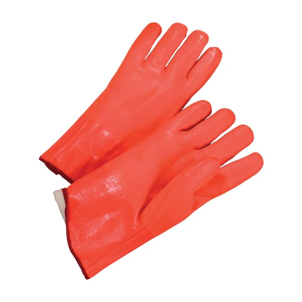 PIP Chemical-Resistant Gloves, L, PVC Palm, Bright Orange, Rough, Pair Hand, Rough Grip, Jersey, Gauntlet Cuff, Supported Support Type, PVC, 12 in Length, Resists: Abrasion, Acid, Chemical, Grease, Oil, Water and Solvent