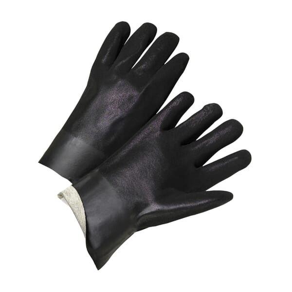 PIP Chemical-Resistant Gloves, Standard, L Size, PVC Palm, Black, Rough, Pair Hand, Rough Grip Style, Cotton Interlock Lining, Gauntlet Cuff, Supported Support, PVC Coating, 14 in Length, Resists: Abrasion, Acid, Chemical, Grease, Oil, Water and Solvent
