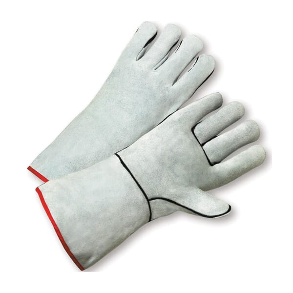 PIP 930LHO Welding Gloves, L, Split Cowhide Leather/Kevlar Thread, Gray, Cotton Lining, Gauntlet Cuff, 14 in L