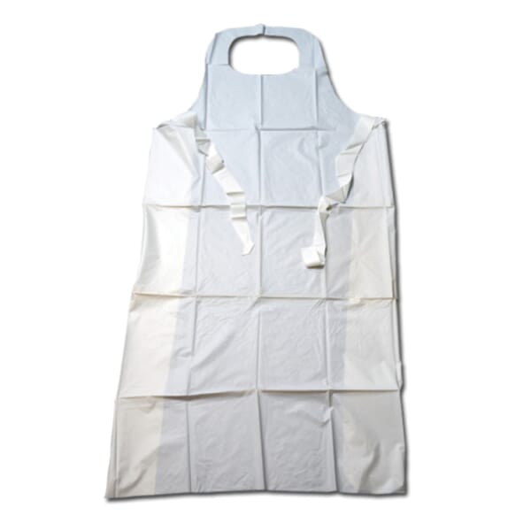 PIP Embossed Apron, Series: UDP, White, Polyethylene, 46 in Length, 28 in Width, Tie Closure, Resists: Chemical, Fat, Oil, Grease and Salt