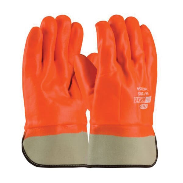 PIP ProCoat Chemical-Resistant Gloves, Dipped Insulated Mens, Universal Size, PVC Palm, Hi-Viz Orange, Smooth, Smooth Grip Style, Foam Lining, Safety Cuff, Supported Support, PVC Coating, 10 in Length, Resists: Acid, Caustic, Grease, Liquid, Oil and Solvent