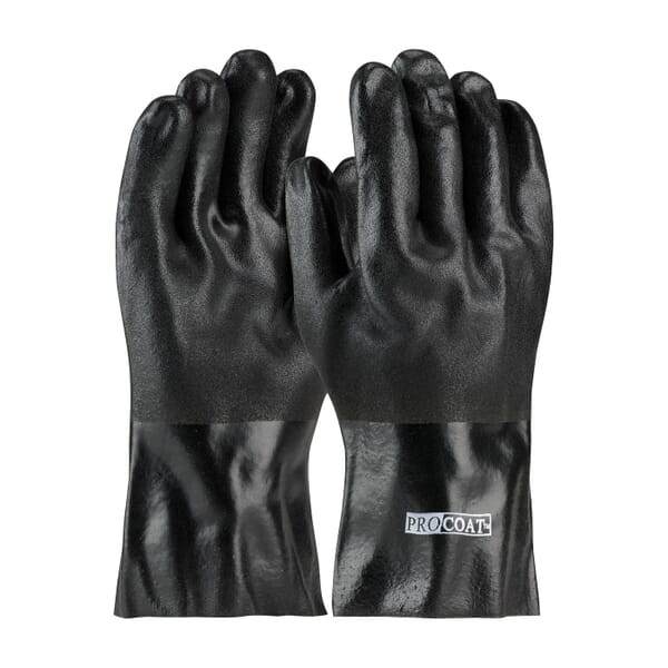PIP ProCoat 58-8230DD Dipped Coated Gloves, Universal, Cotton/PVC, Black, Jersey Lining, 12 in L, Resists: Abrasion, Liquid and Oil, Supported Support, Gauntlet Cuff