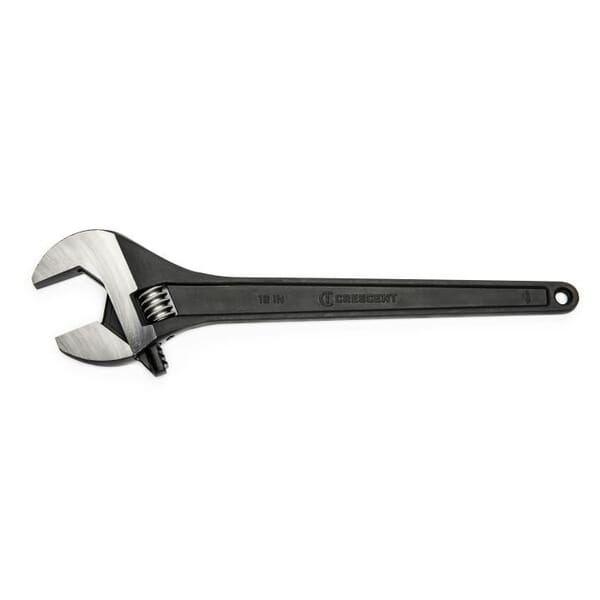 Crescent Adjustable Wrench, 2-1/16 in Wrench Opening, 18 in Overall Length, 4.88 in Jaw Width, 0.69 in Jaw Thickness, Tapered Non-Cushion Grip, Heat Treated Alloy Steel Body, Heat Treated Alloy Steel, Black Oxide