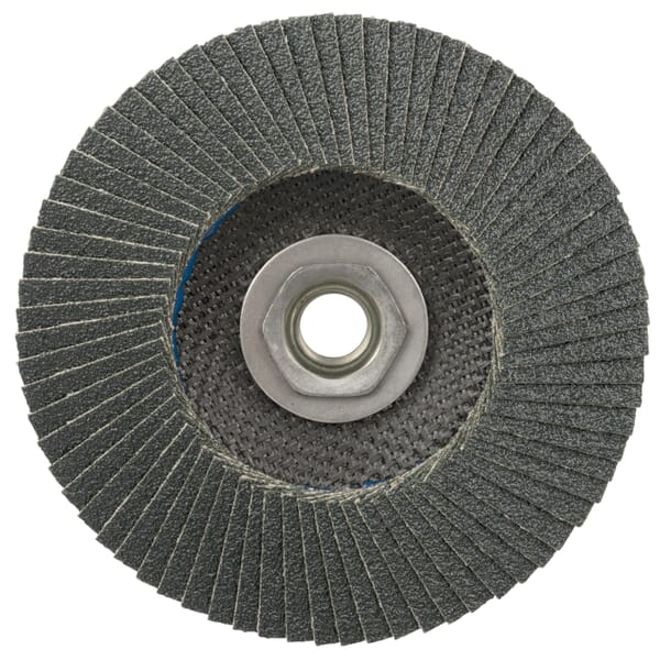 Tiger Paw Coated Abrasive Flap Disc, High Performance, 5 in Disc Dia, 5/8-11 UNC Center Hole Thread Size, 60 Grit, Medium Grade, Zirconia Alumina Abrasive, Type 27 Flat Disc, Phenolic Backing, 12000 rpm Maximum, Blue