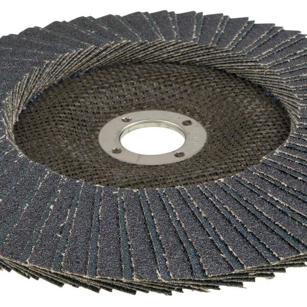 Tiger X Coated Abrasive Flap Disc, Standard Density, 7 in Disc Dia, 7/8 in Center Hole, 60 Grit, Medium Grade, Zirconia Alumina/Ceramic Alumina Abrasive, Type 29/Angled Disc, Phenolic Backing, 8600 rpm Maximum, Blue