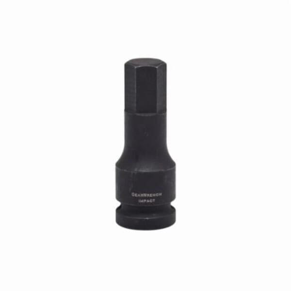 GEARWRENCH Driver Socket Bit, Standard Length, Yes Impact Rated, Measurement System: Imperial, Hex Drive, 1/2 in Drive, Hex Bit, 3/8 in Bit, 0.43 in Bit Length, 0.98 in Drive End Width, 3.07 in Overall Length, Specifications Met: ASME B107.33, Chrome Molybdenum Alloy Steel, Manganese Phosphate