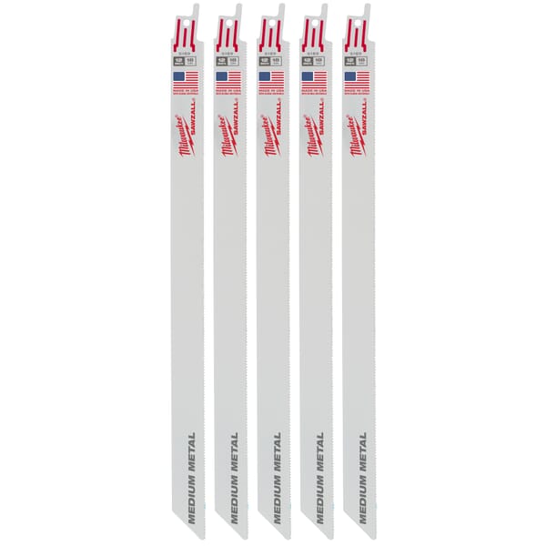 Milwaukee SAWZALL Reciprocating Saw Blade, Double Duty Straight Back Thin Kerf, 12 in Length, 3/4 in Width, 0.035 in Thickness, 18 TPI, Matrix II Teeth, 1/2 in Tang, Universal/Toothed Edge Tang, Bi-Metal Cutting Edge, Bi-Metal Body, Uncoated, Applicable Materials: Most Metal
