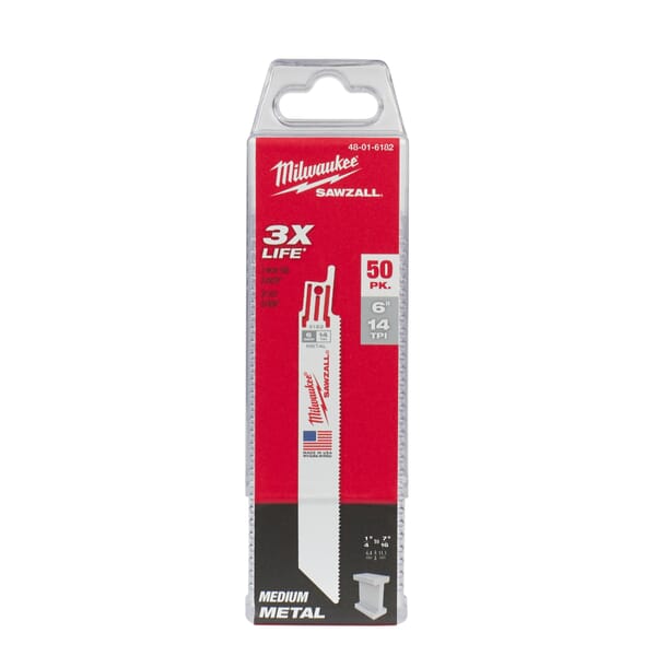 Milwaukee SAWZALL 48-01-6182 Double Duty Straight Back Thin Kerf Reciprocating Saw Blade, 6 in L x 3/4 in W, 14 TPI, Bi-Metal Body, Universal/Toothed Edge Tang