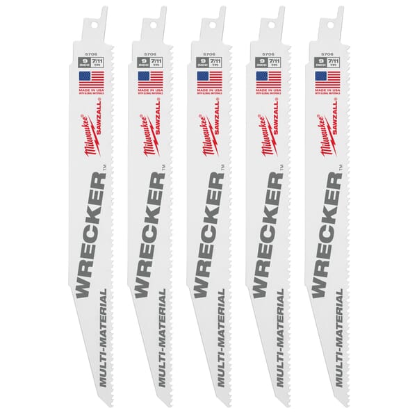 Milwaukee ToolMilwaukee SAWZALL The Wrecker 48-00-5706 Demolition Straight Back Reciprocating Saw Blade, 9 in L x 1 in W, 8 TPI, Bi-Metal Body, Universal/Toothed Edge Tang