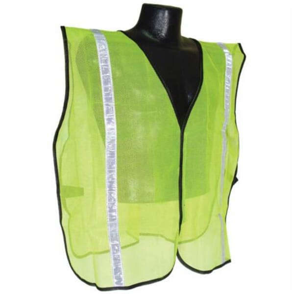 Radians Safety Vest, Non-Rated, Series: SVG1, Universal Size, Hi-Viz Green, Polyester Mesh, Green/Silver Stripe, Hook and Loop Closure, Specifications Met: ANSI Specified, OSHA Approved