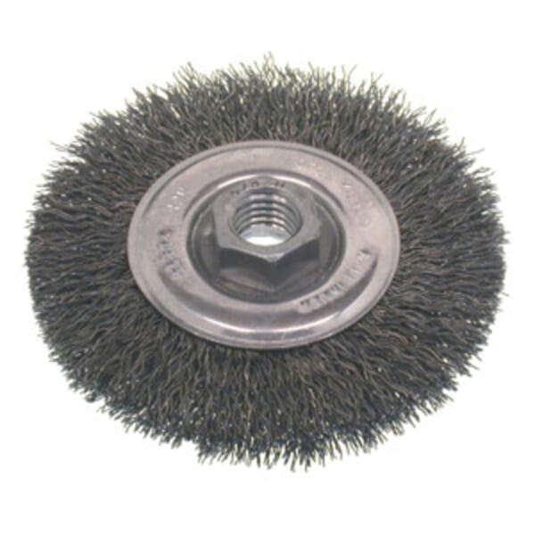 Osborn 21309 High Speed Small Grinder Wheel Brush With Steel Nut, 4 in Dia Brush, 0.014 in Dia Crimped Filament/Wire, 5/8-11 Arbor Hole